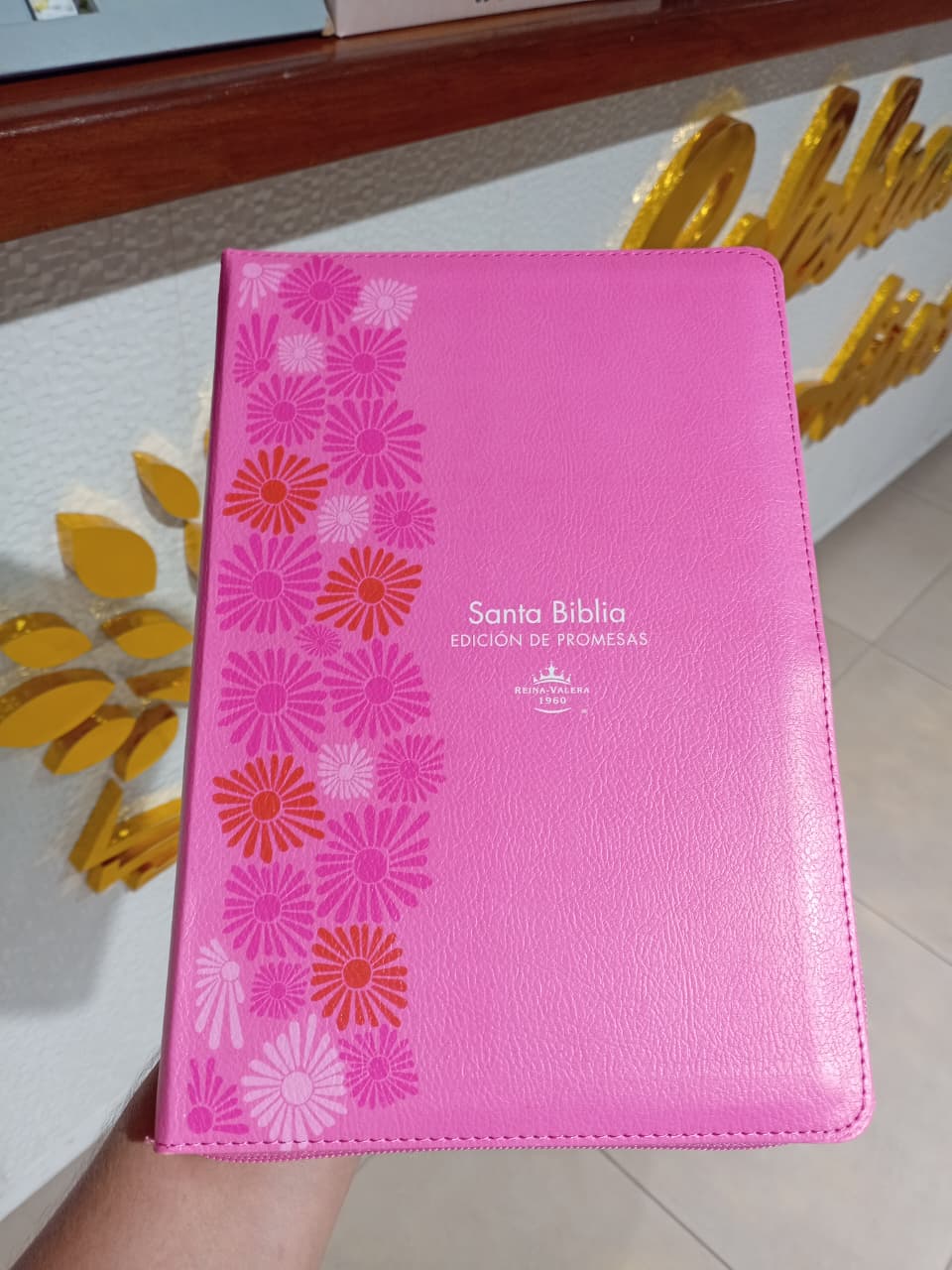 Santa Biblia de Promesas RV1960 Tamaño Manual, Letra Grande, Piel Especial c/Índice y Cierre / Floral / Rosa cantidad