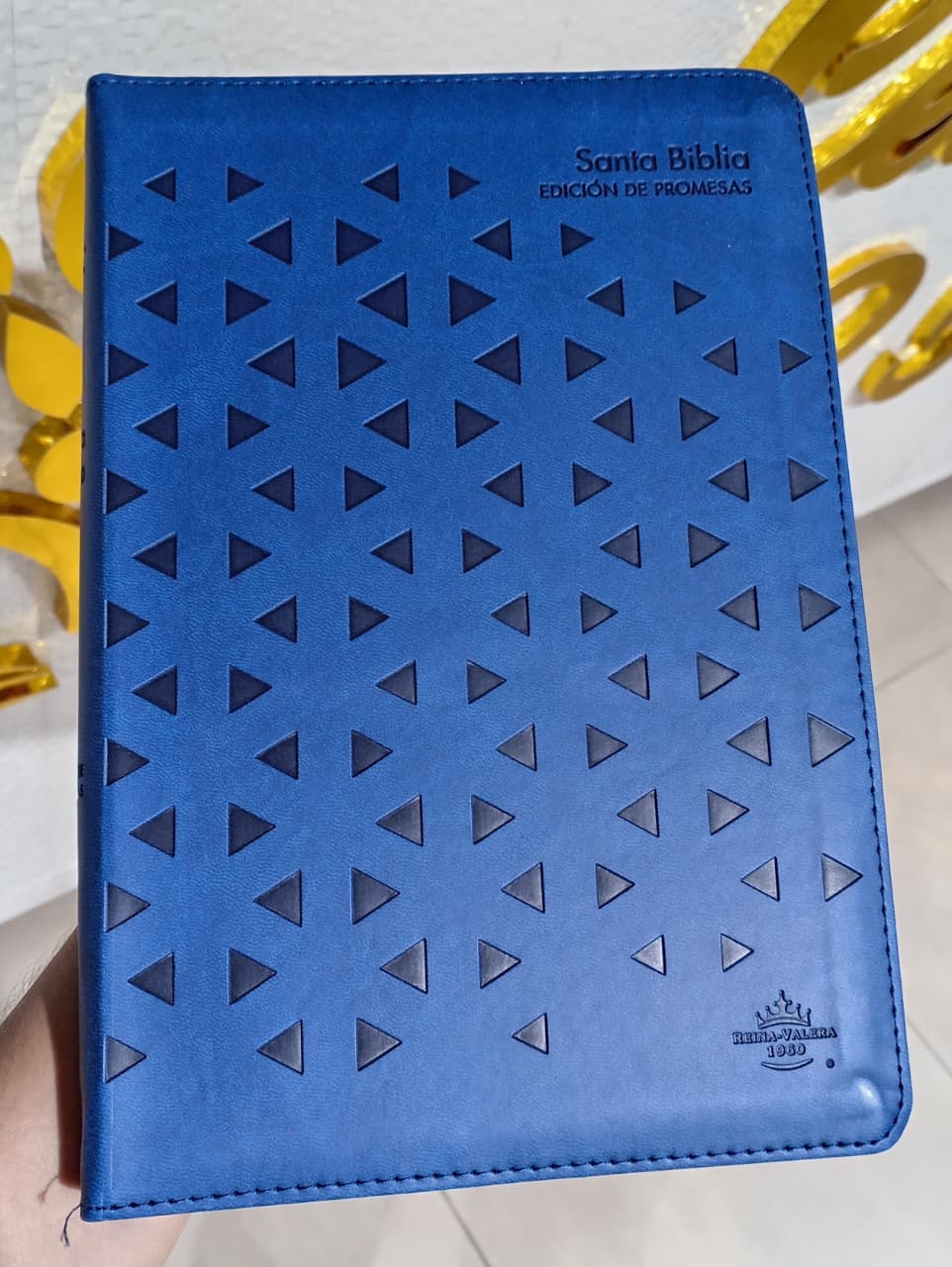 Santa Biblia de Promesas Reina Valera 1960 Letra Gigante - 13 Ptos. Piel Especial c/Índice y Cierre / Triángulos / Azul cantidad