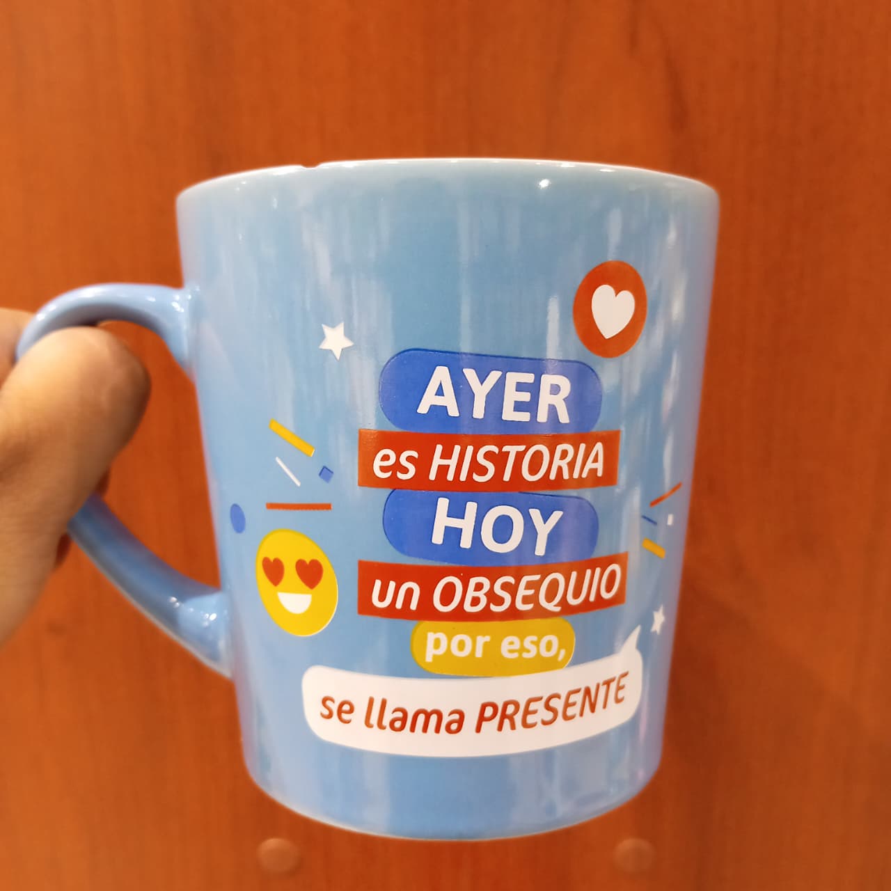 Taza Toda Ocasión con Emoticones “Ayer es historia hoy un obsequio” cantidad